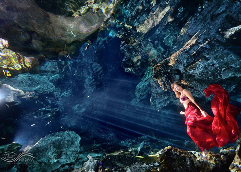 Underwater fashion day in a cenote – Aquatic fashion portraits