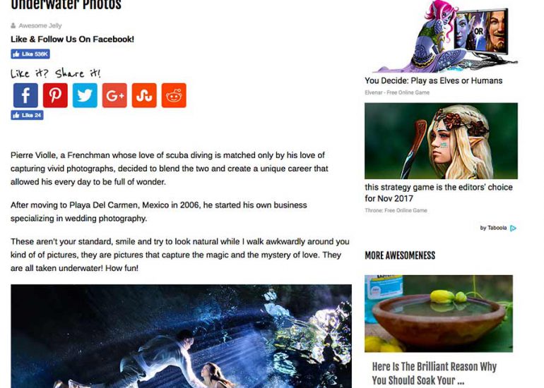 Link to the article “Scuba Diving Photographer Captures Stunningly Beautiful Underwater Photos” screenshot from the post: