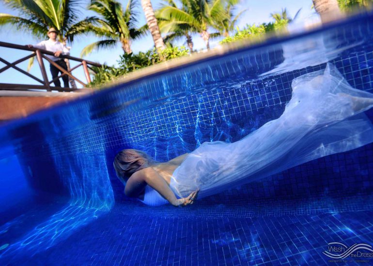 underwater trash the dress in a tropical pool in the Riviera Maya / Cancun- Trash the Dress of Bride and groom in their...