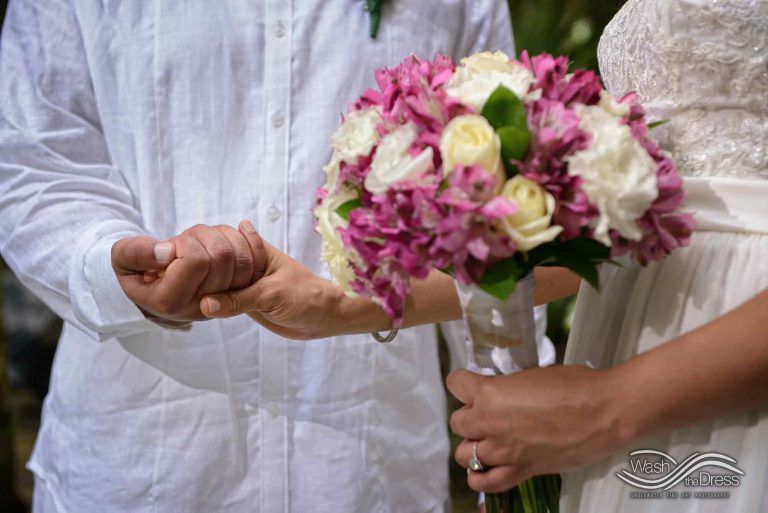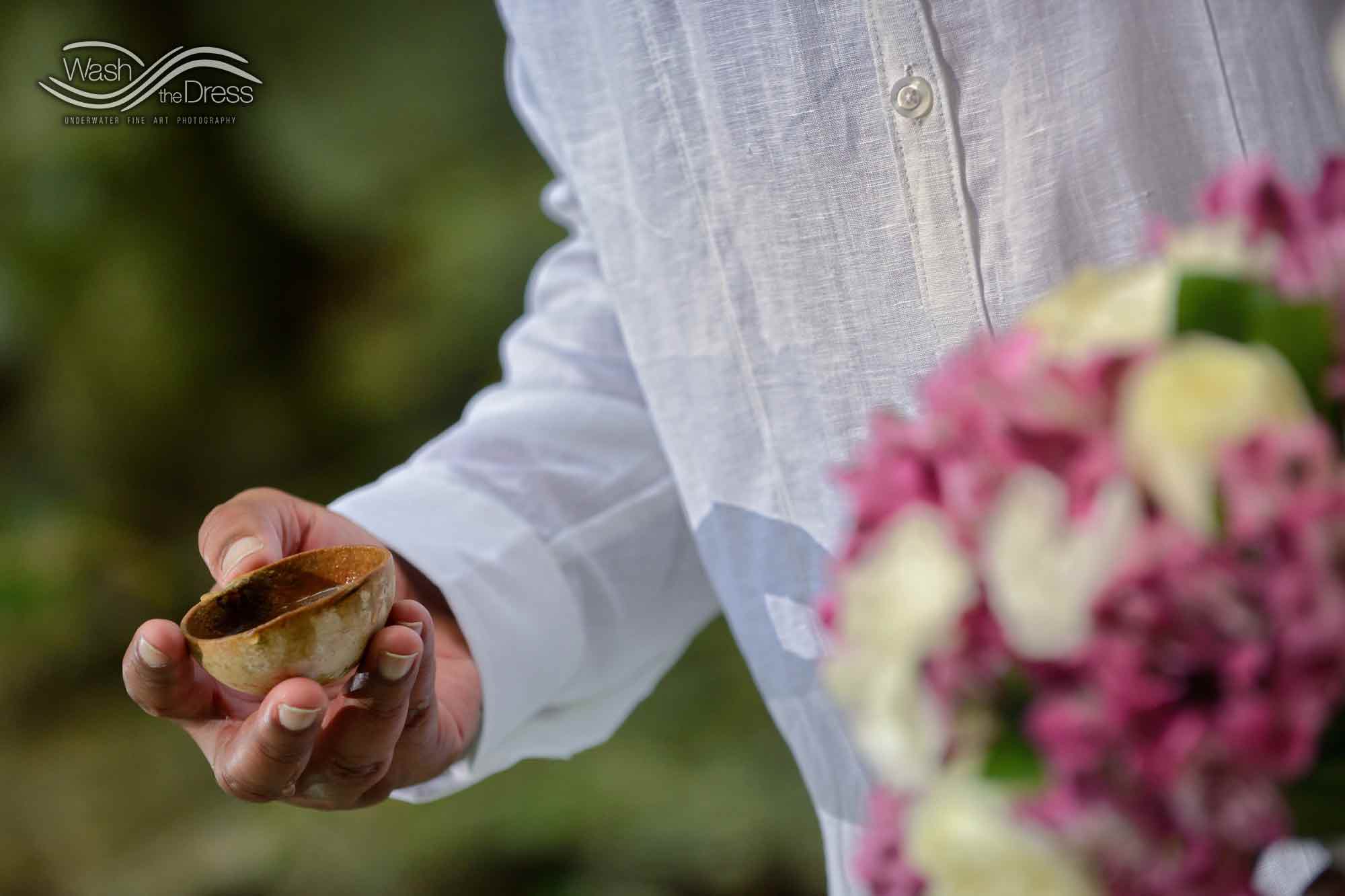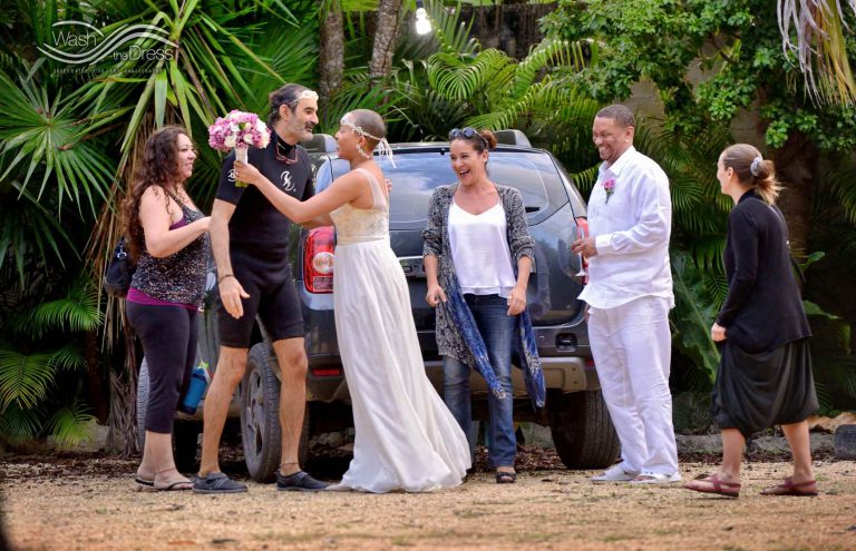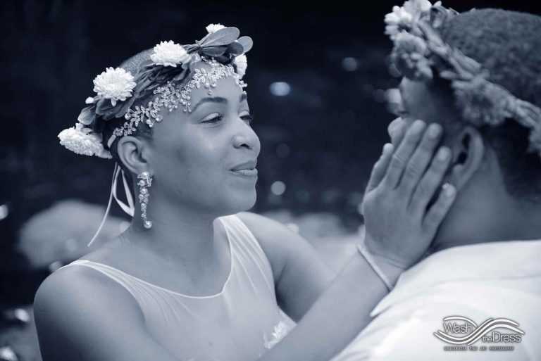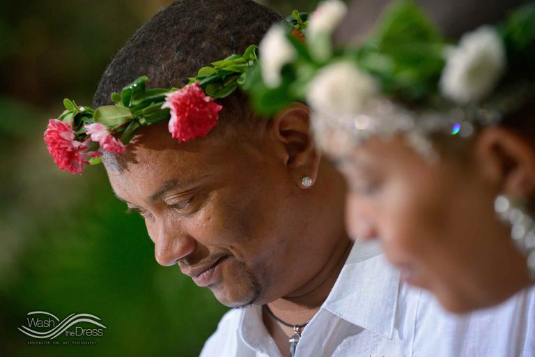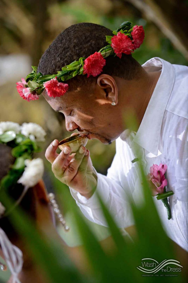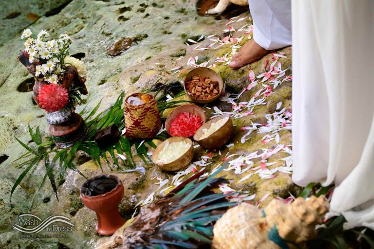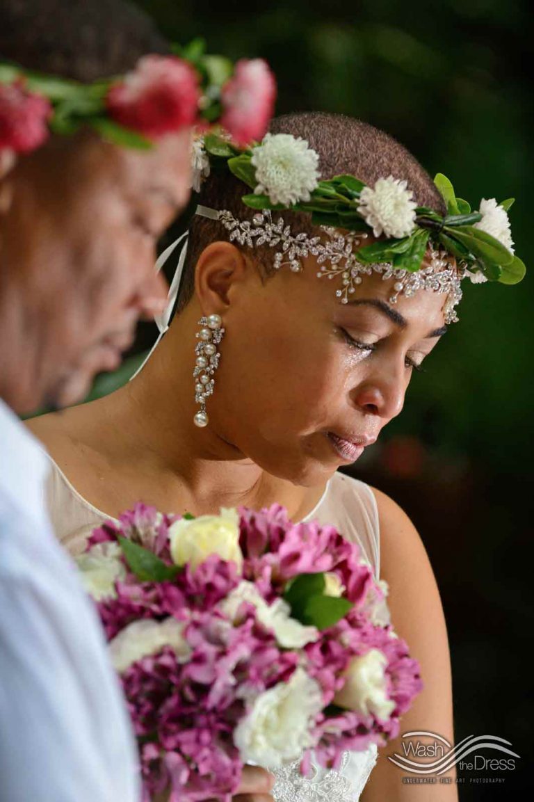 Shareefah and Victor came to Cancun to get married at an intimate ceremony at a cenote. The ceremony was conducted by a Maya shaman. A ray of sunlight passed between the trees during the ceremony and shone directly on the couple – it was a magical moment in the heart of the Mexican jungle. Of course, after the ceremony we also did a photo shoot in the waters of the cenote.